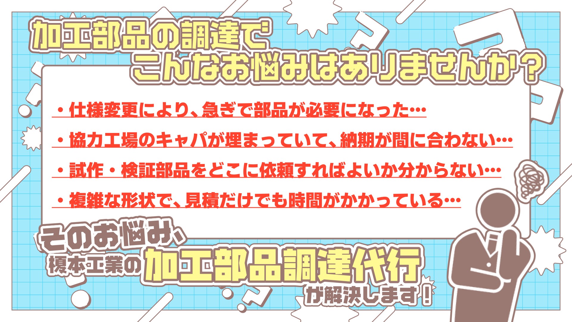 2026.03.19 【短納期対応】お急ぎの部品調達も榎本工業へ! 榎本工業 技術ニュース vol.107|榎本工業株式会社 マシニング加工も板金加工も、最短2〜5日でお届けします。 榎本工業が短納期に強い理由 〇 縦型マシニング加工で短納期を実現 榎本工業は自社工場を保有し、縦型マシニングセンタによる加工を得意としています。 アルミ・鉄・ステンレスなどの切削加工に対応。 100mm~1000mmサイズまでの部品加工はお任せください。 試作部品や単品加工も短納期で製作します。 CAD/CAMを活用し、3Dデータから加工プログラムを作成。 複雑な形状でもスムーズに加工へ展開できます。 〇 板金加工も特急対応!幅広いニーズにお応えします マシニングだけでなく、板金加工の短納期もお任せください。 ・サイズ1000mm以内、板厚T=6まで対応。 ・鉄・ステンレス・アルミに対応。溶接品も承ります。 「どこも引き受けてくれない」とお困りの際は、ぜひご相談ください。 〇 加工経験者のスタッフが直接対応 加工経験を持つスタッフが直接対応し、コストや納期の課題をその場で判断します。 また設備メーカーでもあるため、形状や条件に応じた最適な加工方法の判断も可能です。 CADデータをお送りいただければ、専任プログラマーが加工準備をスムーズに進めます。 〇 100社を超えるパートナー企業×自社設備の機動力 自社での特急対応はもちろん、国内外100社を超える協力企業ネットワークを活用! 大量の図面をまとめてお預かりし、「どこに頼めば一番早いか」を熟知したプロが最適な調達を代行します。
