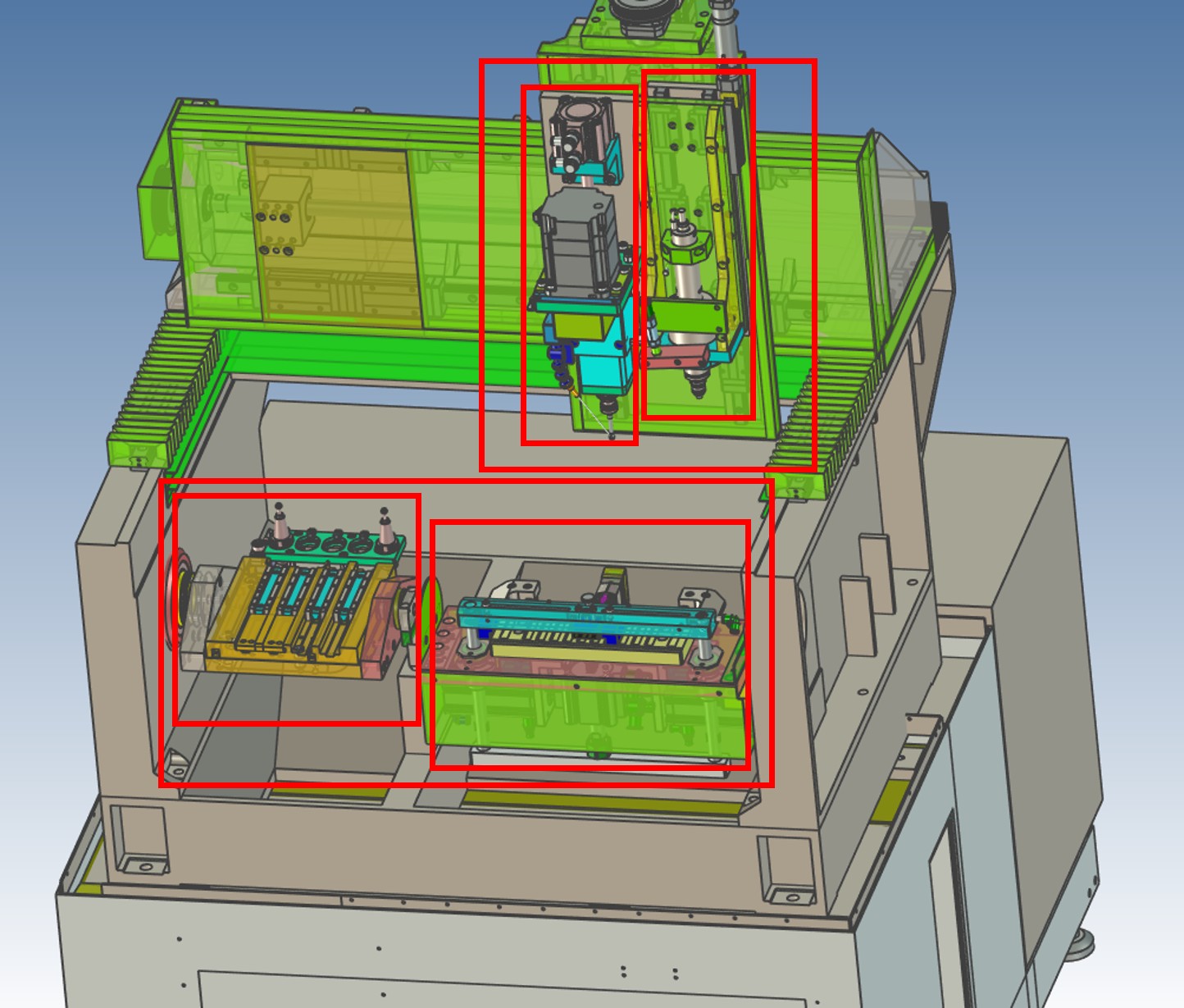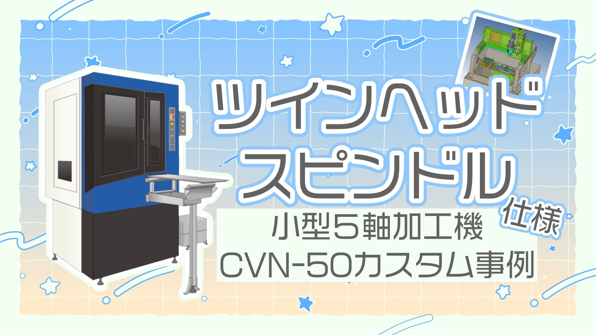 2025.10.02 【ツインヘッドスピンドル仕様】小型5軸加工機CVN-50カスタム事例 榎本工業 技術ニュース vol.97|榎本工業株式会社 既存設備だけではカバーしきれない・・・ 限られたスペースでも生産力を高めたい・・・ 榎本工業は、お客様の生産現場に合わせたオーダーメイドの加工機を設計・製作しています。 今回は、CVN-50シリーズをお使いのお客様から寄せられたご相談をきっかけに誕生したカスタム加工機を紹介いたします。 その名もCVN-50THS。 Twin Head Spindle(ツインヘッドスピンドル)の名の通り、2本の主軸を搭載。 1台で異なる加工を効率的にこなします。 CVN-50THS とは ご相談内容は、「CVN-50標準機1台では、メンテナンスなどにより一時的に生産が止まってしまうことがあるため、もう1台のCVN-50を用意し、生産が止まらないバックアップ体制を構築したい」というものでした。 さらに、「もう1台のCVN-50をバックアップ運用時以外に使用しないのはもったいないので、普段は別部品の穴あけ・タップ加工をできるようにして欲しい」というご要望もいただきました。 この条件を満たすため、まずは1本の主軸で既存の切削(アルミの高速回転切削)と穴あけ・タップ加工を両立させる案を検討しました。 しかしその場合、高速・重切削に対応した高価なスピンドルを使用する必要があり、モーターも大きいものを採用せざるを得ず、設備全体も大型化して導入や維持のハードルが高くなってしまいます。 そこで榎本工業では、左右に独立した2本の主軸を備えるツインヘッドスピンドルを採用しました。 右側の主軸をアルミの高速回転切削、左側の主軸を穴あけ・タップ加工と別々にすることにより、コストを抑えたまま小型を保ちつつ、1台で2つの加工をこなせる仕様を実現しました。 特徴 設備サイズ:W1000×D1150×H1750mm(クーラントタンク除く) 重量:約800kg(クーラントタンク除く) 右側主軸:アルミなどの高速回転切削(最大30,000rpm) 右側加工エリア:アルミなど高速回転加工向け。1本の工具で高速切削。 左側主軸:穴あけ・タップ加工(最大3,000rpm) 左側加工エリア:A軸搭載で360度割り出しが可能。ツール交換は5本対応。 榎本工業では、セミオーダーに対応したカスタム加工機や、機械設計から電気制御・加工・組立まで社内一貫対応している専用機の製作、各種VA・VE提案など対応した加工部品調達代行を取り扱っております。 加工機や試作機・専用機について、解決したい問題がございましたら、ぜひお気軽にお問合せください!